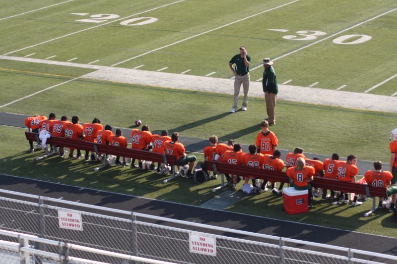 The Varisty defense strategizes during their game against the Ft. Bend Longhorns.